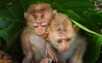 Homeless…! Baby monkeys come under the leaves to escape the rain Read More
